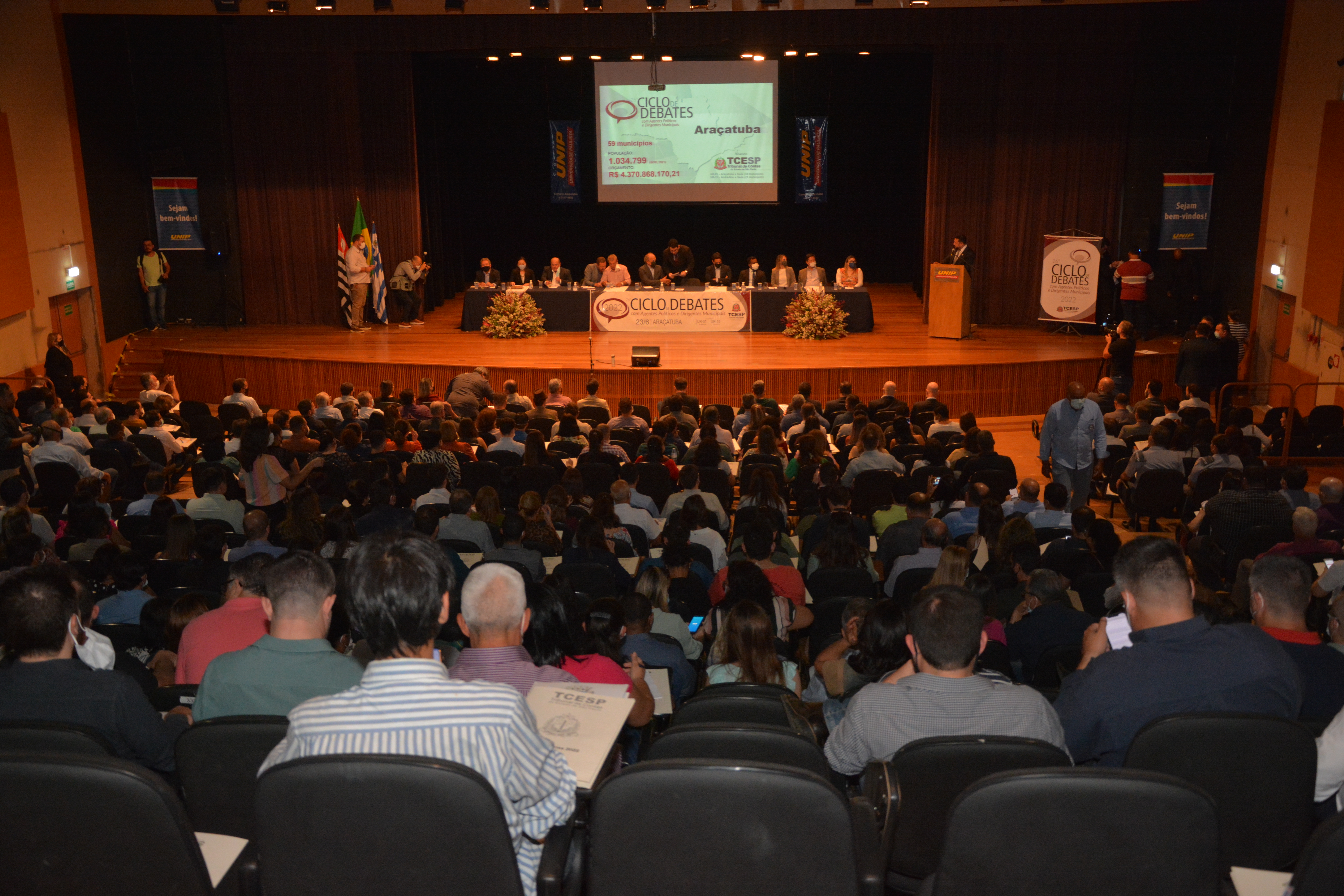 AraçatubaNa tarde de quinta-feira (22), o encontro foi realizado no Teatro da Unip de Araçatuba e contou com mais de 600 pessoas, entre Prefeitos, Vereadores, lideranças políticas, Secretários Municipais, gestores, servidores públicos e representantes de 59 municípios das regiões de Araçatuba e Andradina.
