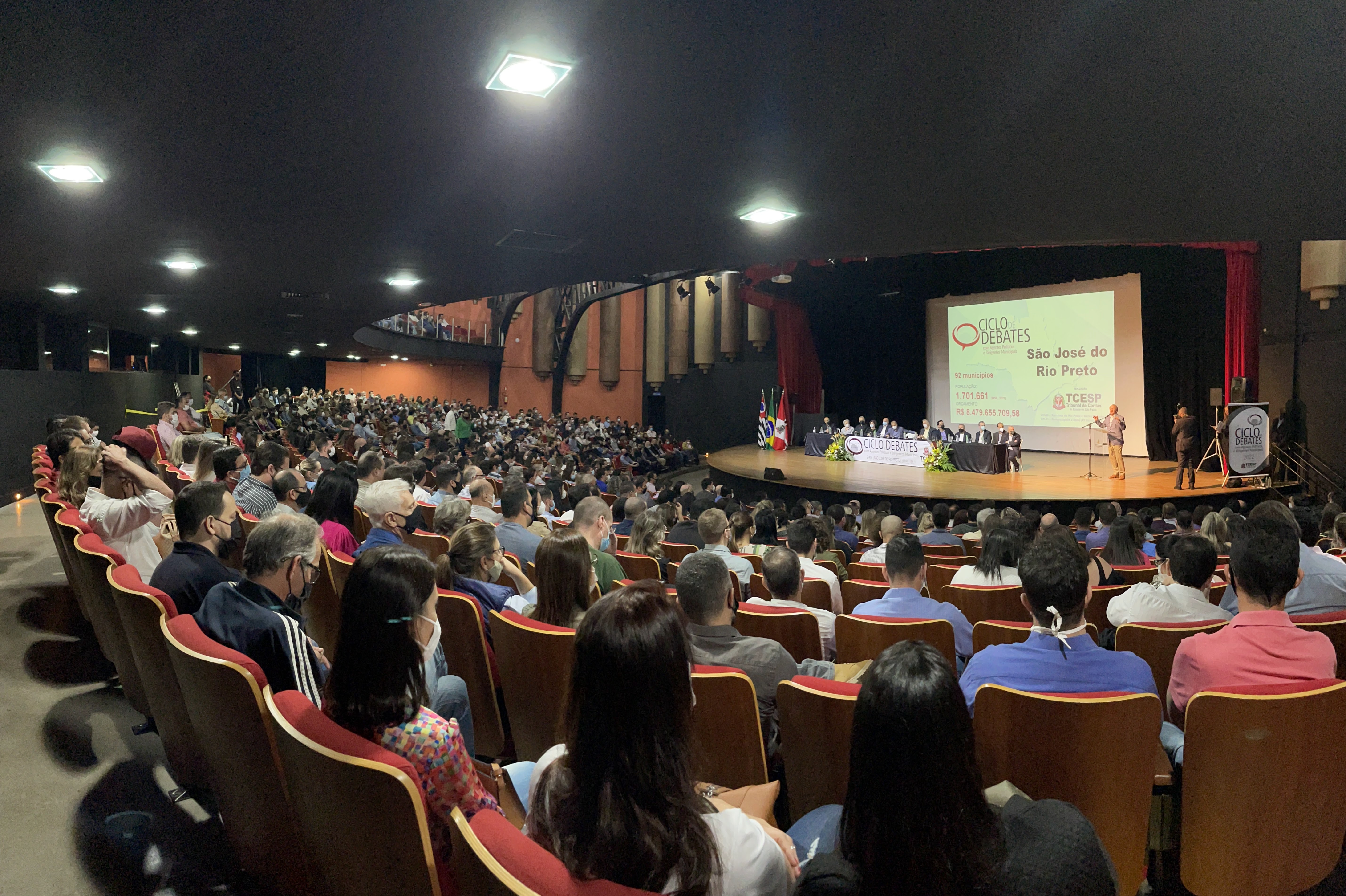 São José do Rio PretoNa sexta-feira (24) pela manhã, a nona reunião do 26º Ciclo de Debates aconteceu no Teatro Paulo Moura, em São José do Rio Preto. O evento reuniu mais de 1 mil pessoas, com a participação de representantes de 92 municípios fiscalizados pelo TCE-SP por meio das Unidades Regionais de São José do Rio Preto (UR-08) e Fernandópolis (UR-11).