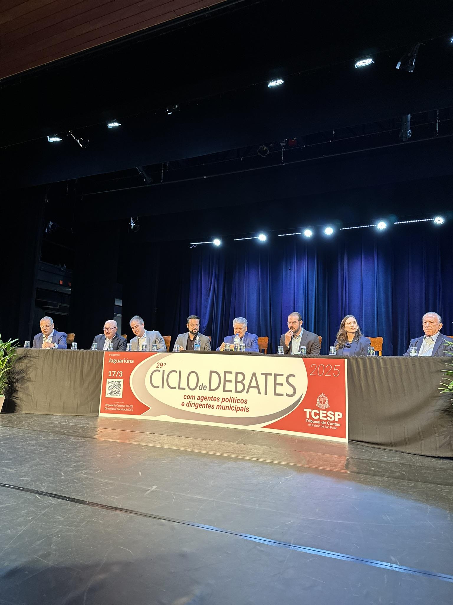 Realizado no Teatro Dona Zenaide, no centro de Jaguariúna, o encontro reuniu representantes de trinta e cinco municípios jurisdicionados do TCE na região de Campinas.