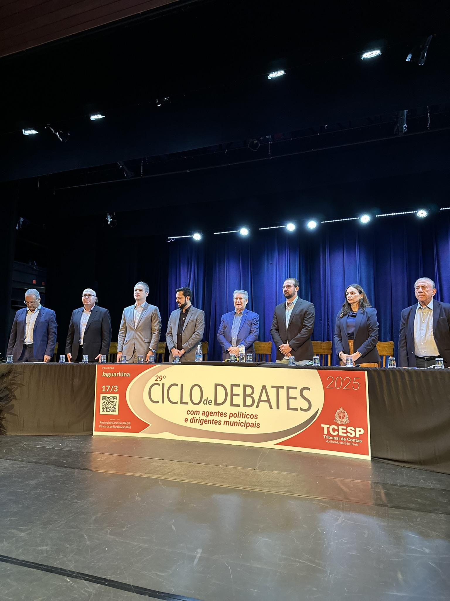 Além da Procuradora-Geral e do Presidente do TCESP, Conselheiro Antonio Roque Citadini, também compuseram a mesa de abertura o Conselheiro Maxwell Borges de Moura Vieira; o Prefeito de Jaguariúna, Davi Neto; o Presidente da Câmara Municipal de Jaguariúna, Vereador Rodrigo Reis de Souza ; o Prefeito de Campinas, Dário Jorge Saad; o Presidente da UVESP, Sebastião Misiara; o Secretário-Diretor Geral da Corte, Germano Fraga Lima; e o Diretor da UR-3 (Campinas), Marco Francisco da Silva Paes.