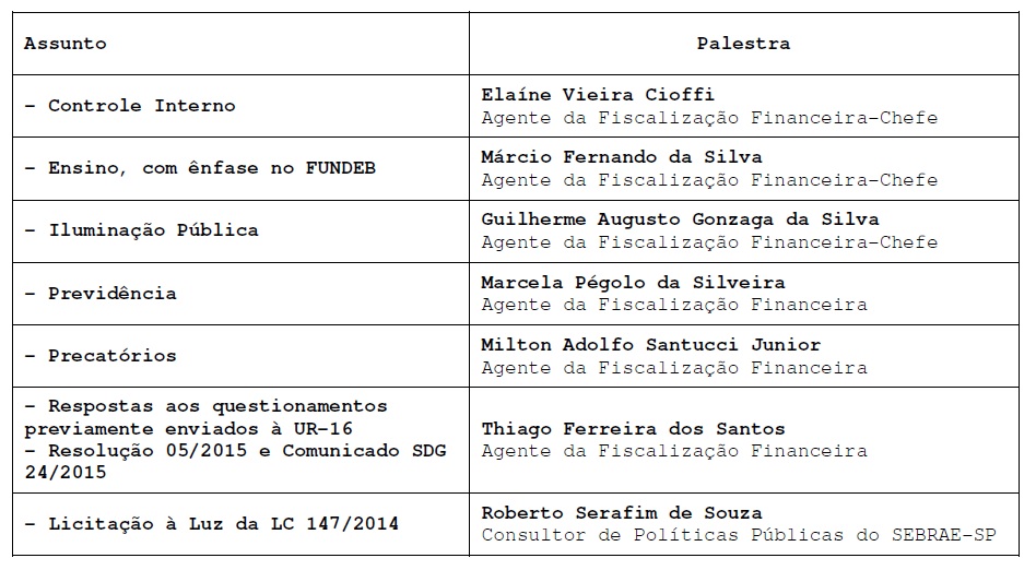 O quadro de palestras do encontro segue abaixo: