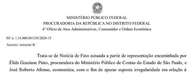 Representação de Procuradora de contas e Doutor em economia resulta em instauração de Inquérito Civil Público