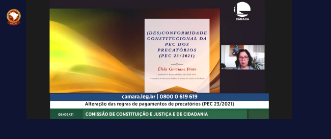 A convite da presidente da Comissão de Constituição e Justiça e de Cidadania (CCJ) da Câmara dos Deputados, Deputada Federal Bia Kicis (PSL-DF), a Procuradora de Contas Dra. Élida Graziane Pinto participou da Audiência Pública que discutiu a Proposta de Emenda à Constituição nº 23/2021 , realizada...