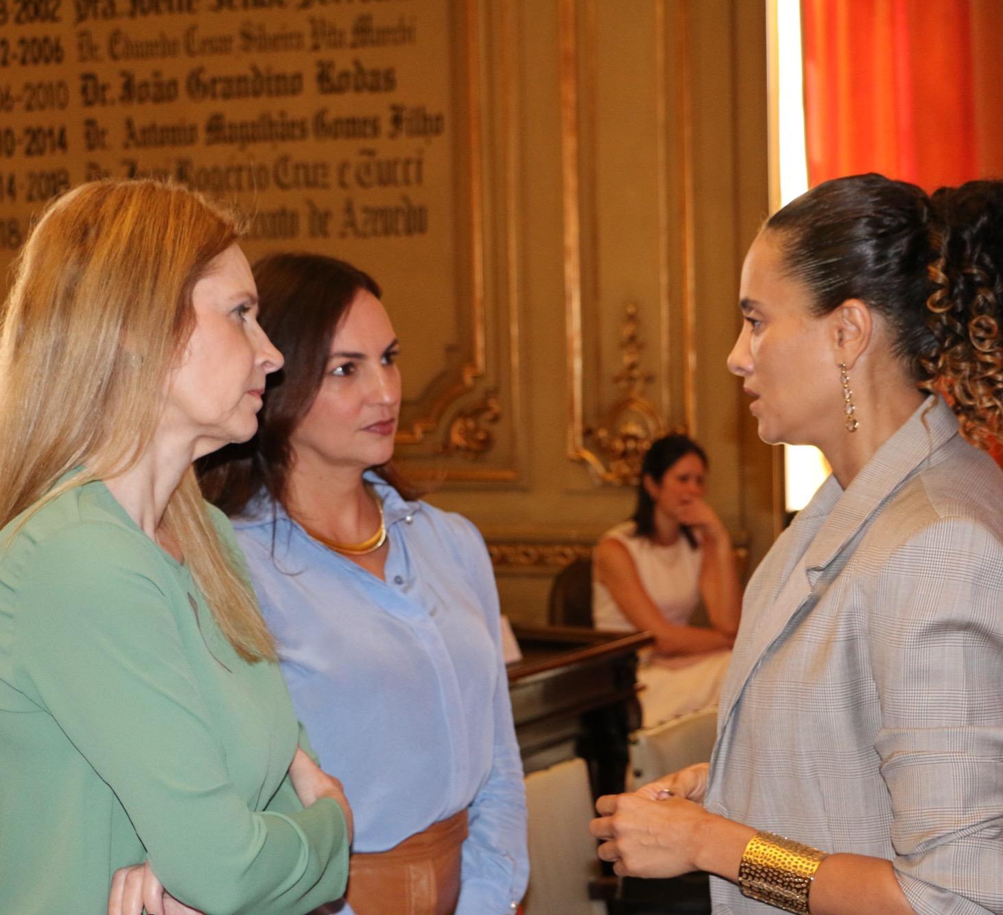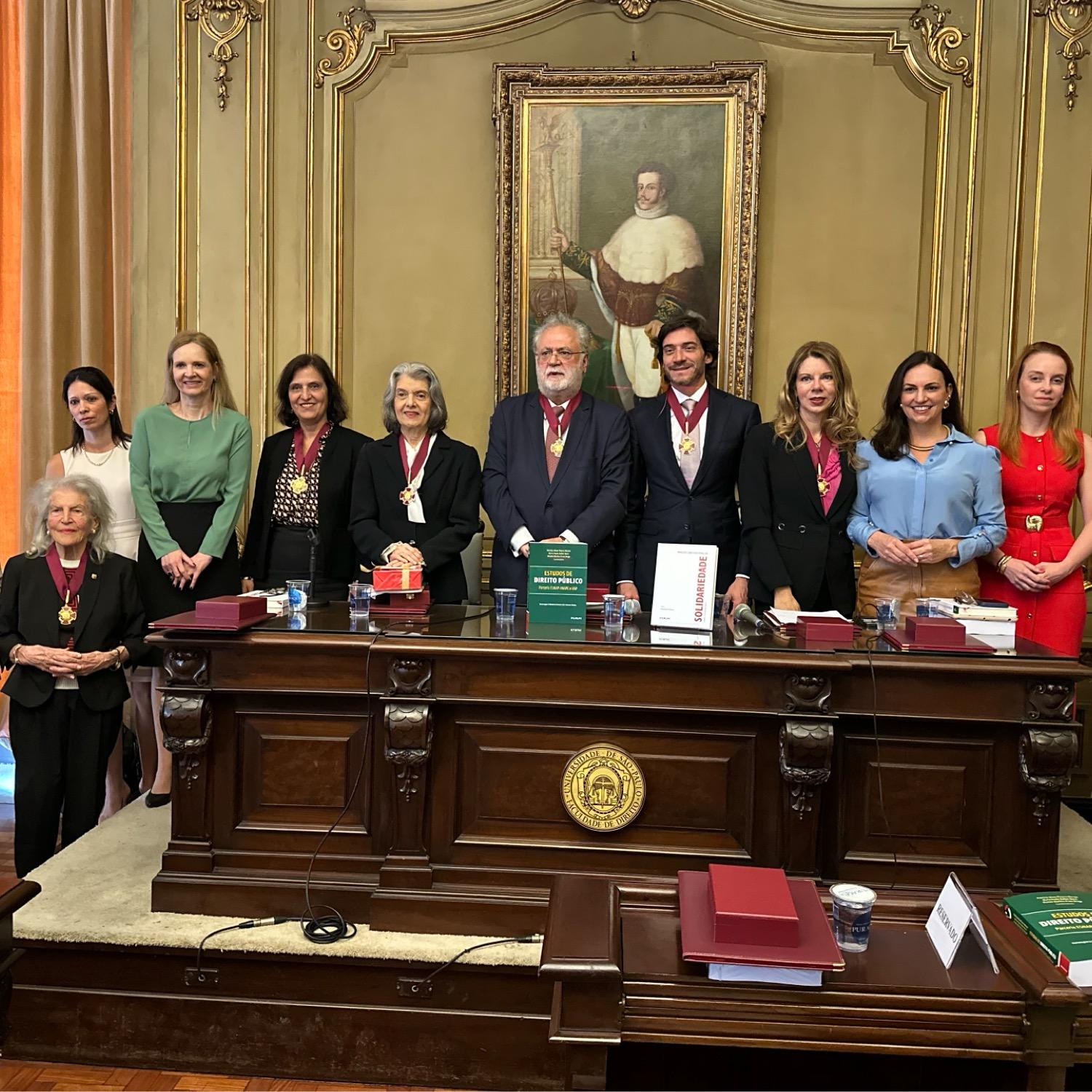 Na companhia da Presidente do Tribunal de Contas paulista, Conselheira Cristiana de Castro Moraes, a Procuradora-Geral de Contas do Estado, Dra. Leticia Formoso Feres, prestigiou a palestra “Princípio da Solidariedade”, proferida pela Ministra do STF e atual Presidente do TSE, Cármen Lúcia, que aconteceu na Sala da Congregação, da Faculdade de Direito da Universidade de São Paulo (FDUSP), na manhã do dia 16 de outubro.