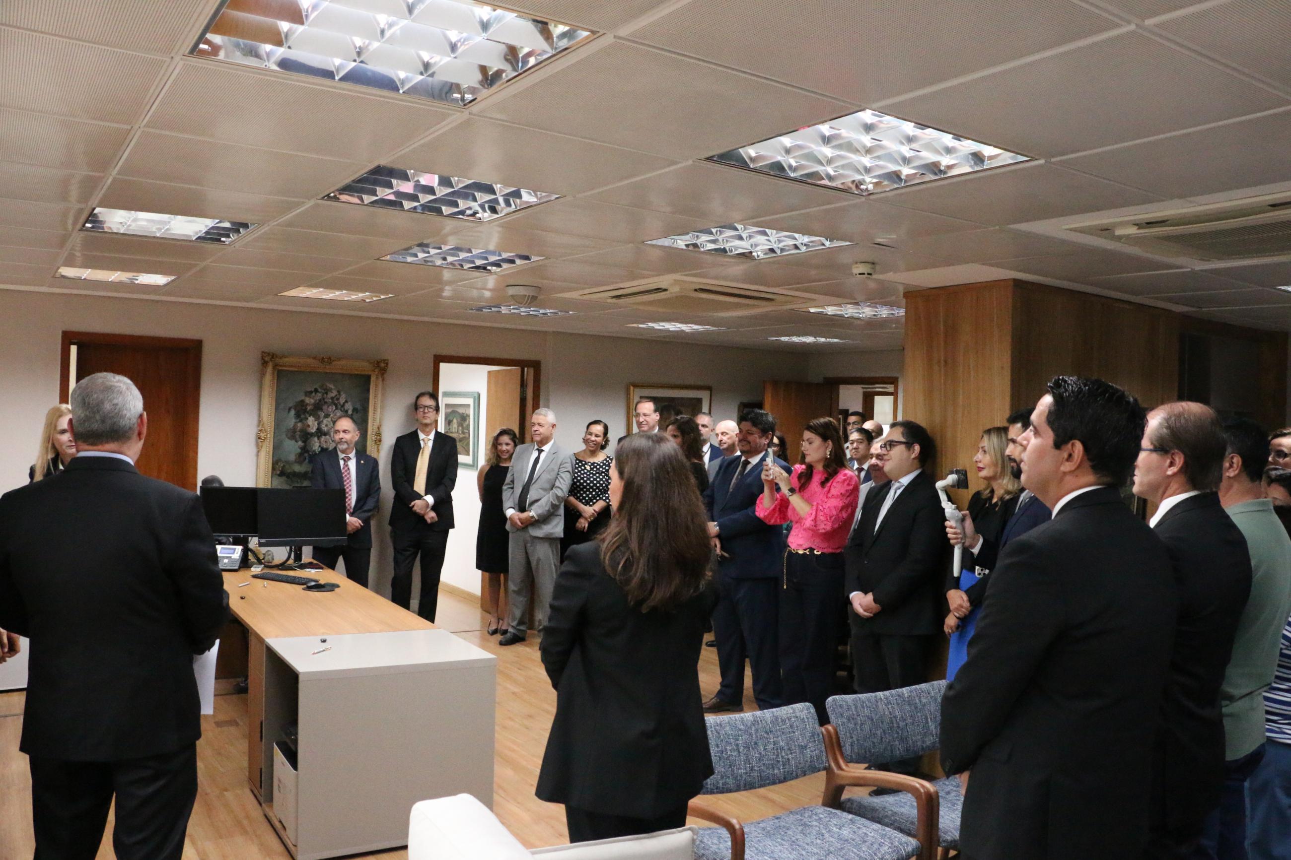 Em seu discurso, a Presidente destacou o caráter coletivo da condução institucional do Tribunal e ressaltou a importância da atuação integrada entre os diversos setores que compõem a Casa.